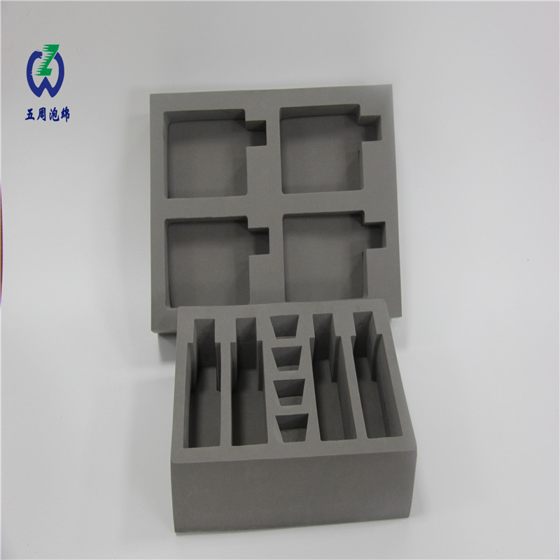 圖中兩塊灰色 EVA 內(nèi)襯,被切割為多個(gè)不同規(guī)格的凹槽 —— 五周泡棉通過(guò) CNC 自動(dòng)化切割工藝,讓每個(gè)凹槽的尺寸誤差控制在 ±0.1mm 內(nèi),既實(shí)現(xiàn)了多件零件的獨(dú)立固定,又最大化利用了包裝空間。高密度 EVA 材質(zhì)支撐性強(qiáng),即使多件零件同時(shí)放置,也能維持結(jié)構(gòu)穩(wěn)定,不會(huì)因受壓變形導(dǎo)致零件松動(dòng)。