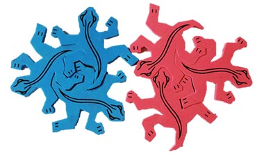 3.每個(gè)小壁虎形狀一樣,可以互相卡住